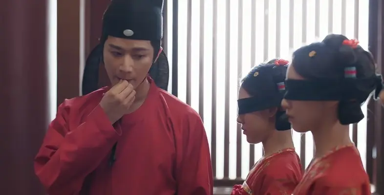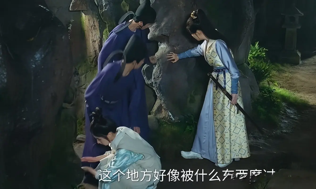 男主萧瑾瑜(王子奇饰演)在湖边的一处假山附近找到了打斗痕迹,并且确认死者是侍卫伍两。